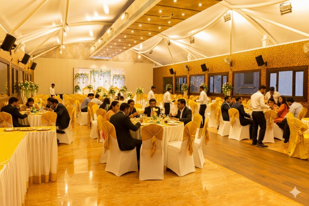 A Banquet hall designed to transform every celebration into a truly memorable experience. Our elegant venue offers spacious, beautifully crafted interiors, modern lighting, and a refined ambiance that perfectly complements weddings, receptions, corporate gatherings, and social events. With state-of-the-art amenities, customizable décor options, and flexible seating arrangements, we ensure every event reflects your unique vision. Our dedicated team of professionals manages every detail with precision—from planning to execution—so you can relax and enjoy your special moments. Ample parking, seamless connectivity, and hospitality services add to the comfort of your guests. Whether it’s an intimate celebration or a grand occasion, our banquet hall provides the perfect blend of luxury, comfort, and sophistication, creating unforgettable memories that last a lifetime.